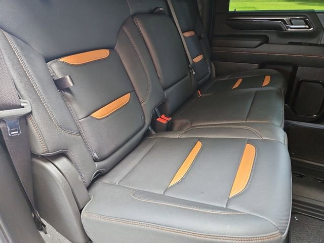 Recent Arrival! CARFAX One-Owner. Clean CARFAX. Certified. Titanium Rush Metallic 10-Speed Automatic, 4WD, Jet Black With Kalahari Accents Leather. This Sierra 2500HD AAT4 is nicely equipped with AT4 Preferred Package (Adaptive Cruise Control, LED Smoked Amber Roof Marker Lamps, Power Sliding Rear Window w/Defogger, and Universal Home Remote), AT4 Premium Plus Package (Off-Road High Clearance Step (LPO) and Power Sunroof), Preferred Equipment Group 4SB (120-Volt Bed Mounted Power Outlet, 120-Volt Instrument Panel Power Outlet, 2 Charge-Only Rear USB Ports, 2 Charge/Data USB Ports Inside Center Console, 2 USB Ports, 2-Speed Active Transfer Case, Bed View Camera w/2 Trailer Camera Provisions, Bose Premium 7-Speaker Sound System, Deep-Tinted Glass, Electric Rear-Window Defogger, Floor-Mounted Center Console, Front Prem Floor Liners w/Removable Carpet Insert, Front Rain-Sensing Wipers, Gloss Black Header Grille & Grille Insert Bars, GMC Connected Access Capable, HD Surround Vision, Heated 2nd Row Outboard Seats, Heated Driver & Front Outboard Passenger Seats, Integrated Trailer Brake Controller, Keyless Open & Start, LED Cargo Area Lighting, Manual Tilt-Wheel/Telescoping Steering Column, OnStar & GMC Connected Services Capable, Power Front Passenger Windows w/Express Up/Down, Push Button Start, Rear Cross Traffic Alert, Rear Prem Floor Liners w/Removable Carpet Insert, Rear Wheelhouse Liners, Remote Vehicle Starter System, Safety Alert Seat, SiriusXM w/360L, Spray-On Bedliner w/AT4 Logo, Steering Wheel Audio Controls, Trailer Cam Provisions & Trailer Viewing Software, Trailer Side Blind Zone Alert, Ultrasonic Front & Rear Park Assist, Unauthorized Entry Theft-Deterrent System, Ventilated Driver & Front Passenger Seats, Wireless Charging, and Wireless Phone Projection), Technology Package (Inside Rearview Auto-Dimming Rear Camera Mirror and Multicolor 15 Diagonal Head-Up Display), X31 Off-Road Package (Hill Descent Control), GMC Certified Pre-Owned Certified, 10-Speed Automatic, 4WD, Jet Black With Kalahari Accents Leather, 10-Way Power Driver Seat Adjuster w/Lumbar, 10-Way Power Passenger Seat Adjuster w/Lumbar, 220-Amp Alternator, 3.42 Axle Ratio, 3.73 Rear Axle Ratio, 4-Wheel Disc Brakes, 5th Wheel & Gooseneck Trailer Wiring Provisions, 7 Speakers, ABS brakes, Air Conditioning, Alloy wheels, AM/FM radio: SiriusXM with 360L, Apple CarPlay/Android Auto, Auto High-beam Headlights, Auto-dimming door mirrors, Auto-dimming Rear-View mirror, Automatic Emergency Braking, Automatic temperature control, Brake assist, Buckle to Drive, Bumpers: body-color, Compass, Delay-off headlights, Driver door bin, Driver Memory, Driver vanity mirror, Dual front impact airbags, Dual front side impact airbags, Electronic Stability Control, Engine Block Heater, Exhaust Brake, Following Distance Indicator, Forward Collision Alert, Front anti-roll bar, Front Bucket Seats, Front Center Armrest, Front dual zone A/C, Front fog lights, Front Pedestrian Braking, Front reading lights, Front wheel independent suspension, Fully automatic headlights, Heated door mirrors, Heated front seats, Heated rear seats, Heated steering wheel, Heavy-Duty 80 Amp Battery, Hitch Guidance w/Hitch View, Illuminated entry, In-Vehicle Trailering System App, IntelliBeam Automatic High Beam On/Off, Lane Departure Warning System, Low tire pressure warning, Memory seat, Occupant sensing airbag, Off-Road Suspension, Outside temperature display, Overhead airbag, Overhead console, Panic alarm, Passenger door bin, Passenger vanity mirror, Perforated Leather-Appointed Front Seat Trim, Pickup Box, Power door mirrors, Power driver seat, Power passenger seat, Power steering, Power windows, Power-Retractable Black Assist Steps, Premium audio system: Premium GMC Infotainment System, Radio: AM/FM w/Premium GMC Infotainment System, Rain sensing wipers, Rear reading lights, Rear seat center armrest, Rear step bumper, Rear Underseat Storage (LPO), Rear window defroster, Remote keyless entry, REV Hard