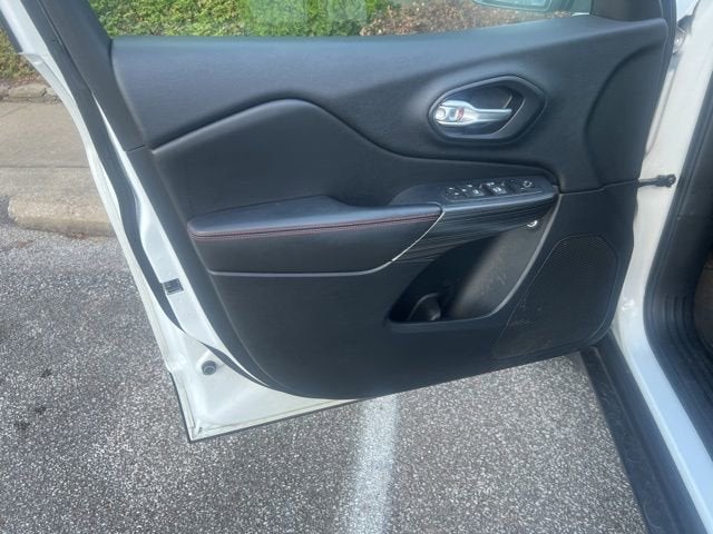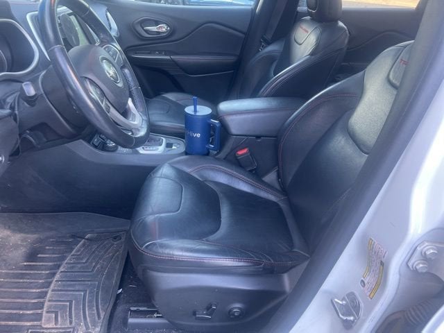 Recent Arrival! Clean CARFAX. Bright White Clearcoat This Cherokee Trailhawk is nicely equipped with Comfort/Convenience Group (Air Conditioning ATC w/Dual Zone Control, Humidity Sensor, Passive Entry/Keyless Go, Power 4-Way Driver Lumbar Adjust, Power 8-Way Driver Seat, Power Liftgate, Premium Air Filter, Rear-View Auto-Dimming Mirror w/Microphone, Remote Proximity Keyless Entry, Remote Start System, Security Alarm, and Universal Garage Door Opener), Leather Interior Group (Heated Front Seats, Heated Steering Wheel, and Leather Trimmed Bucket Seats), Quick Order Package 27E, SafetyTec (Blind Spot & Cross Path Detection, Exterior Mirrors Courtesy Lamps, Exterior Mirrors w/Heating Element, Exterior Mirrors w/Supplemental Signals, ParkSense Rear Park Assist System, and Power Multi-Function Fold Away Mirrors), Trailer Tow Group (7 & 4 Pin Wiring Harness, Auxiliary Transmission Oil Cooler, Class III Receiver Hitch, Jeep Rack Off Road Accessory Kit, and Trailer Tow Wiring Harness), 17 x 7.5 Aluminum Wheels, 4-Wheel Disc Brakes, 6 Speakers, 8.4 Touchscreen Display, ABS brakes, Accent Color Exterior Mirrors, Air Conditioning, Alloy wheels, AM/FM radio: SiriusXM, Anti-whiplash front head restraints, Brake assist, Cloth/Leather/Vinyl Bucket Seats, Compass, Delay-off headlights, Driver door bin, Driver vanity mirror, Dual front impact airbags, Dual front side impact airbags, Electronic Stability Control, Emergency communication system, Engine Oil Cooler, Four wheel independent suspension, Front anti-roll bar, Front Bucket Seats, Front Center Armrest, Front fog lights, Front reading lights, Fully automatic headlights, GPS Antenna Input, Illuminated entry, Integrated Voice Command w/Bluetooth®, Knee airbag, Leather Shift Knob, Low tire pressure warning, Occupant sensing airbag, Off Road Suspension, Outside temperature display, Overhead airbag, Overhead console, Panic alarm, ParkView Rear Back-Up Camera, Passenger door bin, Passenger vanity mirror, Power door mirrors, Power Front/Fixed Rear Full Sunroof, Power steering, Power windows, Radio data system, Radio: Uconnect 8.4, Rear anti-roll bar, Rear reading lights, Rear seat center armrest, Rear side impact airbag, Rear window defroster, Rear window wiper, Remote keyless entry, Roof rack: rails only, Speed control, Speed-sensing steering, Split folding rear seat, Spoiler, Steering wheel mounted audio controls, Tachometer, Telescoping steering wheel, Tilt steering wheel, Traction control, Trip computer, Uconnect Access, Variably intermittent wipers, Voltmeter, and Wheels: 17 x 7.5 Black Painted Aluminum. Price does not include licensing costs, registration fees, taxes and dealer doc fee of $899.50 which are to be paid by the consumer. Mileage is EPA Estimated.