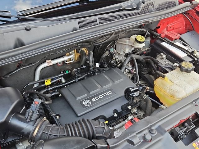 CARFAX One-Owner. Clean CARFAX. Winterberry Red Metallic This Encore Preferred is nicely equipped with Preferred Equipment Group 1SB, 2-Way Manual Front Passenger Seat Adjuster, 3.53 Final Drive Axle Ratio, 4-Wheel Disc Brakes, 6 Speakers, 6-Speaker Audio System, 6-Way Power Driver Seat Adjuster, ABS brakes, Air Conditioning, Alloy wheels, AM/FM radio: SiriusXM, Apple CarPlay/Android Auto, Brake assist, Bumpers: body-color, Cloth w/Leatherette Seat Trim, Compass, Delay-off headlights, Driver door bin, Driver vanity mirror, Driver's Seat Mounted Armrest, Dual front impact airbags, Dual front side impact airbags, Electronic Stability Control, Emergency communication system: OnStar and Buick connected services capable, Exterior Parking Camera Rear, Front anti-roll bar, Front Bucket Seats, Front reading lights, Front wheel independent suspension, Fully automatic headlights, Heated door mirrors, Illuminated entry, Knee airbag, Low tire pressure warning, Occupant sensing airbag, Outside temperature display, Overhead airbag, Panic alarm, Passenger door bin, Passenger vanity mirror, Power door mirrors, Power driver seat, Power steering, Power windows, Radio data system, Radio: Buick Infotainment System AM/FM Stereo, Rear seat center armrest, Rear side impact airbag, Rear window defroster, Rear window wiper, Remote keyless entry, Ride & Handling Suspension, Roof rack: rails only, Security system, SiriusXM Radio, Speed control, Speed-sensing steering, Split folding rear seat, Spoiler, Steering wheel mounted audio controls, Tachometer, Telescoping steering wheel, Tilt steering wheel, Traction control, Trip computer, Turn signal indicator mirrors, Variably intermittent wipers, and Wheels: 18 Machined-Face Alloy. Price does not include licensing costs, registration fees, taxes and dealer doc fee of $899.50 which are to be paid by the consumer. Mileage is EPA Estimated.