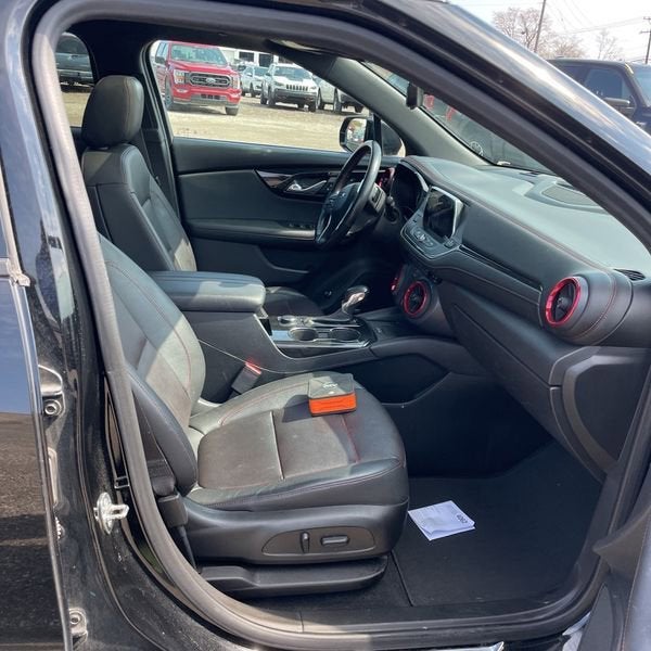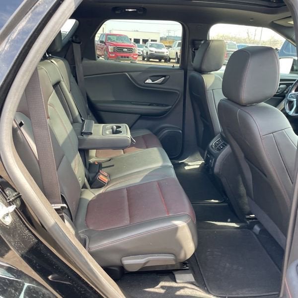 This Blazer RS is nicely equipped with Enhanced Convenience & Driver Confidence II Pkg (Advanced Adaptive Cruise Control, Following Distance Indicator, Forward Automatic Braking, Forward Collision Alert, Front Pedestrian Braking, HD Surround Vision, Heated Rear Outboard Seating Positions, IntelliBeam Headlamps, Lane Keep Assist w/Lane Departure Warning, Memory Settings For Driver Seat & Exterior Mirrors, Power Tilt & Telescoping Steering Column, Radio: Chevrolet Infotainment 3 Premium System, Rear Camera Mirror, Safety Alert Seat, Ventilated Driver & Front Passenger Seats, and Wireless Charging), Preferred Equipment Group 1RS, Sun & Wheels Package (Panoramic Tilt-Sliding Power Sunroof and Wheels: 21 Gloss Black Aluminum), 3.49 Final Drive Ratio, 4-Wheel Disc Brakes, 6 Speakers, 6-Speaker Audio System Feature, 6-Way Power Front Passenger Seat Adjuster, ABS brakes, Air Conditioning, Alloy wheels, AM/FM radio: SiriusXM, Apple CarPlay/Android Auto, Auto-dimming door mirrors, Auto-dimming Rear-View mirror, Automatic temperature control, Brake assist, Bumpers: body-color, Child-Seat-Sensing Airbag, Compass, Delay-off headlights, Driver door bin, Driver vanity mirror, Dual front impact airbags, Dual front side impact airbags, Electronic Stability Control, Emergency communication system: OnStar and Chevrolet connected services capable, Four wheel independent suspension, Front anti-roll bar, Front Bucket Seats, Front Center Armrest, Front dual zone A/C, Front reading lights, Fully automatic headlights, Garage door transmitter, Heated door mirrors, Heated Driver & Front Passenger Seats, Heated front seats, Heated steering wheel, High-Intensity Discharge Headlights, Illuminated entry, Knee airbag, Leather Shift Knob, Low tire pressure warning, Navigation System, Occupant sensing airbag, Outside temperature display, Overhead airbag, Overhead console, Panic alarm, Passenger door bin, Passenger vanity mirror, Perforated Leather-Appointed Seat Trim, Power door mirrors, Power driver seat, Power Liftgate, Power passenger seat, Power steering, Power windows, Radio data system, Radio: Chevrolet Infotainment 3 Plus System, Rear anti-roll bar, Rear reading lights, Rear seat center armrest, Rear window defroster, Rear window wiper, Remote keyless entry, Ride & Handling Suspension, Roof rack: rails only, Security system, Speed control, Speed-sensing steering, Split folding rear seat, Spoiler, Steering wheel mounted audio controls, Tachometer, Telescoping steering wheel, Tilt steering wheel, Traction control, Trip computer, Turn signal indicator mirrors, Variably intermittent wipers, Voltmeter, and Wheels: 20 Dark Android Machined-Face Aluminum. Price does not include licensing costs, registration fees, taxes and dealer doc fee of $899.50 which are to be paid by the consumer.
