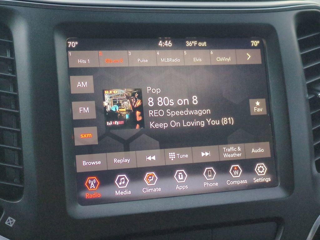 This Cherokee Trailhawk is nicely equipped with Quick Order Package 27E Trailhawk, 3.517 Axle Ratio, 4-Wheel Disc Brakes, 6 Speakers, 8.4 Touchscreen Display, ABS brakes, Air Conditioning, Alloy wheels, AM/FM radio: SiriusXM, Anti-whiplash front head restraints, Apple CarPlay, Apple CarPlay/Android Auto, Automatic temperature control, AutoStick Automatic Transmission, Auxiliary Transmission Oil Cooler, Brake assist, Cloth/Premium Vinyl Bucket Seats, Compass, Delay-off headlights, Driver door bin, Driver vanity mirror, Dual Bright Exhaust Tips, Dual front impact airbags, Dual front side impact airbags, Electronic Stability Control, Engine Oil Cooler, Exterior Mirrors Courtesy Lamps, Exterior Mirrors w/Supplemental Signals, Four wheel independent suspension, Front anti-roll bar, Front Bucket Seats, Front Center Armrest, Front dual zone A/C, Front fog lights, Front License Plate Bracket (DISC), Front reading lights, Fully automatic headlights, Google Android Auto, GPS Antenna Input, Heated door mirrors, Hill Descent Control, Illuminated entry, Integrated Voice Command w/Bluetooth®, Knee airbag, Leather Shift Knob, Low tire pressure warning, Manufacturer's Statement of Origin (DISC), Occupant sensing airbag, Off Road Suspension, Outside temperature display, Overhead airbag, Overhead console, Panic alarm, ParkView Rear Back-Up Camera, Passenger door bin, Passenger vanity mirror, Power door mirrors, Power driver seat, Power steering, Power windows, Radio data system, Radio: Uconnect 4 w/8.4 Display, Rear anti-roll bar, Rear reading lights, Rear seat center armrest, Rear side impact airbag, Rear window defroster, Rear window wiper, Remote keyless entry, Roof rack: rails only, SiriusXM Satellite Radio, Speed control, Speed-sensing steering, Split folding rear seat, Spoiler, Steering wheel mounted audio controls, Stop-Start Multiple VSM System, Tachometer, Telescoping steering wheel, Tilt steering wheel, Traction control, Trip computer, Turn signal indicator mirrors, USB Host Flip, Variably intermittent wipers, Voltmeter, and Wheels: 17 x 7.5 Painted/Polished Aluminum. Price does not include licensing costs, registration fees, taxes and dealer doc fee of $899.50 which are to be paid by the consumer.