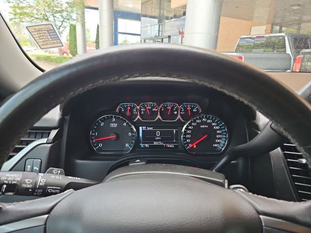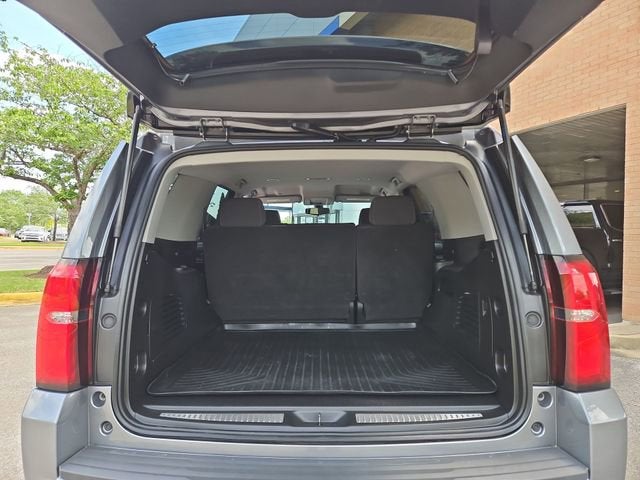 CARFAX One-Owner. Certified. Satin Steel Metallic Jet Black Cloth. This Tahoe LS is nicely equipped with Custom Edition (3rd Row Passenger Seat Delete, Grille w/Chrome Horizontal Louver Insert (LPO), and Wheels: 18 x 8.5 Painted Aluminum), Preferred Equipment Group 1LS (1st & 2nd Row Color-Keyed Carpeted Floor Mats, 2nd Row 60/40 Split-Folding Manual Bench, 3rd Row Manual 60/40 Split-Folding Fold Flat Bench, 4-Wheel Antilock Disc Brakes w/Brake Assist, 5 12-Volt Auxiliary Power Outlets, Black Assist Steps, Cargo Net, Color-Keyed Carpeting Floor Covering, Electronic Cruise Control w/Set & Resume Speed, Extended-Range Remote Keyless Entry, Front Passenger 6-Way Power Seat Adjuster, Leather-Wrapped Steering Wheel, Rear Park Assist w/Audible Warning, Remote Vehicle Start, Roof-Mounted Luggage Rack Side Rails, and SiriusXM Radio), Premium Smooth Ride Suspension Package, GM Certified, Jet Black Cloth, 18 x 8.5 Aluminum Wheels, 3.08 Rear Axle Ratio, 3rd row seats: split-bench, 4-Wheel Disc Brakes, 6 Speakers, 6-Speaker Audio System Feature, ABS brakes, Air Conditioning, Alloy wheels, AM/FM radio: SiriusXM, Apple CarPlay/Android Auto, Automatic temperature control, Bluetooth® for Phone, Brake assist, Bumpers: body-color, CD player, Compass, Delay-off headlights, Driver door bin, Driver Inboard & Front Passenger Airbags, Driver vanity mirror, Dual front impact airbags, Dual front side impact airbags, Electronic Stability Control, Emergency communication system: OnStar and Chevrolet connected services capable, Exterior Parking Camera Rear, Floor Console, Front anti-roll bar, Front Bucket Seats, Front Center Armrest, Front dual zone A/C, Front High-Back Reclining Bucket Seats, Front reading lights, Front wheel independent suspension, Fully automatic headlights, HD Radio, Heated door mirrors, Illuminated entry, Leather steering wheel, Low tire pressure warning, Occupant sensing airbag, Outside temperature display, Overhead airbag, Overhead console, Panic alarm, Passenger door bin, Passenger vanity mirror, Power door mirrors, Power driver seat, Power passenger seat, Power steering, Power windows, Premium audio system: Chevrolet MyLink, Premium Cloth Seat Trim, Radio: Chevrolet Infotainment AM/FM Stereo, Rain sensing wipers, Rear air conditioning, Rear anti-roll bar, Rear reading lights, Rear seat center armrest, Rear window defroster, Rear window wiper, Remote keyless entry, Security system, Single-Slot CD/MP3 Player, Speed control, Speed-sensing steering, Split folding rear seat, Spoiler, Steering wheel mounted audio controls, Tachometer, Tilt steering wheel, Traction control, Trip computer, Variably intermittent wipers, and Voltmeter. Price does not include licensing costs, registration fees, taxes and dealer doc fee of $899.50 which are to be paid by the consumer. Mileage is EPA Estimated.