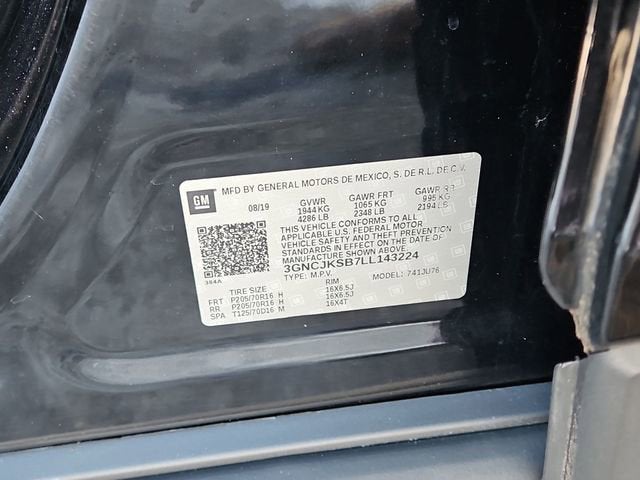 Clean CARFAX. Mosaic Black Metallic This Trax LS is nicely equipped with Preferred Equipment Group 1LS, Tint & Cruise Package (Deep-Tinted Rear Glass Windows & Liftgate and Electronic Automatic Cruise Control), 16 Aluminum Wheels, 2 USB Ports w/Auxiliary Input Jack, 2-Way Manual Front Passenger Seat Adjuster, 3.53 Final Drive Axle Ratio, 4-Way Manual Driver Seat Adjuster, 6 Speakers, 6-Speaker Audio System Feature, ABS brakes, Air Conditioning, Alloy wheels, AM/FM radio, Apple CarPlay/Android Auto, Brake assist, Bumpers: body-color, Cloth Seat Trim, Compass, Delay-off headlights, Driver door bin, Driver vanity mirror, Driver's Seat Mounted Armrest, Dual front impact airbags, Dual front side impact airbags, Electronic Stability Control, Emergency communication system: OnStar and Chevrolet connected services capable, Exterior Parking Camera Rear, Front anti-roll bar, Front Bucket Seats, Front Bucket Seats w/Driver Power Lumbar, Front License Plate Bracket, Front reading lights, Front wheel independent suspension, Fully automatic headlights, Illuminated entry, Knee airbag, Low tire pressure warning, Occupant sensing airbag, Outside temperature display, Overhead airbag, Panic alarm, Passenger door bin, Passenger vanity mirror, Power door mirrors, Power steering, Power windows, Premium audio system: Chevrolet MyLink, Radio data system, Radio: Chevrolet Infotainment 3 System, Rear seat center armrest, Rear side impact airbag, Rear window defroster, Rear window wiper, Remote keyless entry, Security system, Split folding rear seat, Spoiler, Steering wheel mounted audio controls, Tachometer, Telescoping steering wheel, Tilt steering wheel, Traction control, Trip computer, and Variably intermittent wipers. Price does not include licensing costs, registration fees, taxes and dealer doc fee of $899.50 which are to be paid by the consumer. Mileage is EPA Estimated.
