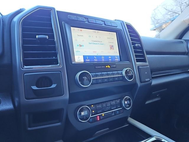 Blue Metallic 4WD. This Expedition Platinum is nicely equipped with Equipment Group 600A, 4WD, 12 Speakers, 1st & 2nd Row Floor Liners, 3.31 Axle Ratio, 3rd row seats: split-bench, 4-Wheel Disc Brakes, ABS brakes, Adaptive suspension, Adjustable pedals, Air Conditioning, Alloy wheels, AM/FM radio: SiriusXM, Auto High-beam Headlights, Auto-dimming door mirrors, Auto-dimming Rear-View mirror, Automatic temperature control, Brake assist, Bumpers: body-color, Compass, Delay-off headlights, Driver door bin, Driver vanity mirror, Dual front impact airbags, Dual front side impact airbags, Electronic Stability Control, Emergency communication system: SYNC 3 911 Assist, Exterior Parking Camera Rear, Four wheel independent suspension, Front anti-roll bar, Front Bucket Seats, Front Center Armrest, Front dual zone A/C, Front fog lights, Front reading lights, Fully automatic headlights, Garage door transmitter, Genuine wood console insert, Genuine wood dashboard insert, Genuine wood door panel insert, Heated door mirrors, Heated front seats, Heated rear seats, Heated steering wheel, Heated/Cooled Leather Front Captain's Chairs, Illuminated entry, Leather steering wheel, Low tire pressure warning, Memory seat, Navigation System, Occupant sensing airbag, Outside temperature display, Overhead airbag, Overhead console, Panic alarm, Passenger door bin, Passenger vanity mirror, Pedal memory, Power door mirrors, Power driver seat, Power Liftgate, Power moonroof, Power passenger seat, Power steering, Power windows, Radio data system, Radio: B&O Sound System by Bang & Olufsen, Rain sensing wipers, Rear air conditioning, Rear anti-roll bar, Rear audio controls, Rear reading lights, Rear window defroster, Rear window wiper, Reclining 3rd row seat, Remote keyless entry, Reversible Cargo Mat, Roof rack, Security system, SiriusXM Satellite Radio, Speed control, Speed-sensing steering, Speed-Sensitive Wipers, Split folding rear seat, Steering wheel memory, Steering wheel mounted audio controls, SYNC 3 Communications & Entertainment System, Tachometer, Telescoping steering wheel, Tilt steering wheel, Traction control, Trip computer, Turn signal indicator mirrors, Variably intermittent wipers, Ventilated front seats, Voltmeter, and Wheels: 22 6-Spoke Painted Machined-Face Aluminum. Price does not include licensing costs, registration fees, taxes and dealer doc fee of $899.50 which are to be paid by the consumer. Mileage is EPA Estimated.