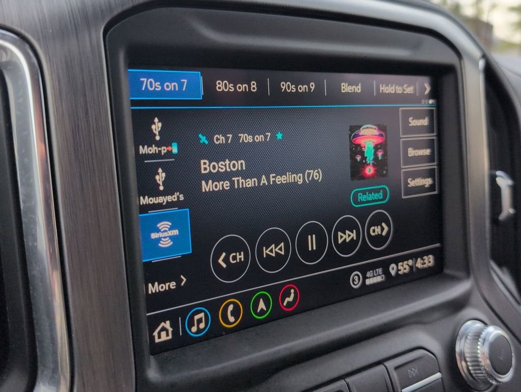 This Sierra 1500 Denali is nicely equipped with Denali Ultimate Package (Power Sunroof), Driver Alert Package I (Lane Change Alert w/Side Blind Zone Alert, Rear Cross Traffic Alert, and Ultrasonic Front & Rear Park Assist), Driver Alert Package II (Adaptive Cruise Control - Camera, Automatic Emergency Braking, Following Distance Indicator, Forward Collision Alert, Front Pedestrian Braking, IntelliBeam Automatic High Beam On/Off, and Lane Keep Assist w/Lane Departure Warning), Preferred Equipment Group 5SA (12-Volt Rear Auxiliary Power Outlet, 120-Volt Bed Mounted Power Outlet, 120-Volt Instrument Panel Power Outlet, 170 Amp Alternator, 2 USB Ports, 2 USB Ports (1st Row), 4G LTE Wi-Fi Hotspot Capable, Auxiliary External Transmission Oil Cooler, Chrome Recovery Hooks, Chrome Wheel To Wheel Assist Steps, Color-Keyed Carpeting Floor Covering, Compass, Deep-Tinted Glass, Electric Rear-Window Defogger, Electrical Lock Control Steering Column, Floor-Mounted Center Console, GMC Connected Access Capable, HD Radio, HD Rear Vision Camera, Heated 2nd Row Outboard Seats, Heated Driver & Front Outboard Passenger Seating, Heavy-Duty Rear Locking Differential, High-Capacity Air Filter, Hill Descent Control, Hitch Guidance, Hitch Guidance w/Hitch View, In-Vehicle Trailering App, Integrated Trailer Brake Controller, Keyless Open & Start, LED Cargo Area Lighting, Manual Tilt-Wheel & Telescoping Steering Column, OnStar & GMC Connected Services Capable, Power Door Locks, Power Front Passenger Windows w/Express Up/Down, Power Front Windows w/Driver Express Up/Down, Power Rear Windows w/Express Down, Power Sliding Rear Window w/Rear Defogger, ProGrade Trailering System, Rear Dual USB Charging-Only Ports, Rear Wheelhouse Liners, Remote Vehicle Starter System, Safety Alert Seat, Signature Denali Grille, Spray-On Pickup Bed Liner w/Denali Logo, Steering Wheel Audio Controls, Theft Deterrent System (Unauthorized Entry), Universal Home Remote, Ventilated Driver & Front Passenger Seats, and Wireless Charging), Technology Package (Bed View Camera, HD Surround Vision w/2 Trailer View Camera Provisions, Multicolor 15 Diagonal Head-Up Display, and Rear Camera Mirror), Trailering Package, 10-Speed Automatic, 4WD, Jet Black Leather, 10-Way Power Driver Seat Adjuster w/Lumbar, 10-Way Power Passenger Seat Adjuster w/Lumbar, 3.23 Rear Axle Ratio, 4-Wheel Disc Brakes, 7 Speakers, ABS brakes, Adaptive Ride Control Suspension, Adaptive suspension, Air Conditioning, Alloy wheels, AM/FM radio: SiriusXM with 360L, Apple CarPlay/Android Auto, Auto-dimming door mirrors, Auto-dimming Rear-View mirror, Automatic temperature control, Brake assist, Bumpers: body-color, Delay-off headlights, Driver door bin, Driver Memory, Driver vanity mirror, Dual front impact airbags, Dual front side impact airbags, Electronic Stability Control, Forge Perforated Leather-Appointed Seat Trim, Front anti-roll bar, Front Bucket Seats, Front Center Armrest, Front dual zone A/C, Front fog lights, Front License Plate Kit, Front reading lights, Front wheel independent suspension, Fully automatic headlights, Garage door transmitter, Genuine wood console insert, Genuine wood door panel insert, GMC MultiPro Power Steps (DISC), Heated door mirrors, Heated front seats, Heated rear seats, Heated steering wheel, Illuminated entry, Low tire pressure warning, Memory seat, Navigation System, Occupant sensing airbag, Outside temperature display, Overhead airbag, Overhead console, Panic alarm, Passenger door bin, Passenger vanity mirror, Power door mirrors, Power driver seat, Power passenger seat, Power steering, Power windows, Premium audio system: GMC Infotainment System, Premium Bose 7-Speaker Sound System, Radio data system, Radio: Premium GMC Inf