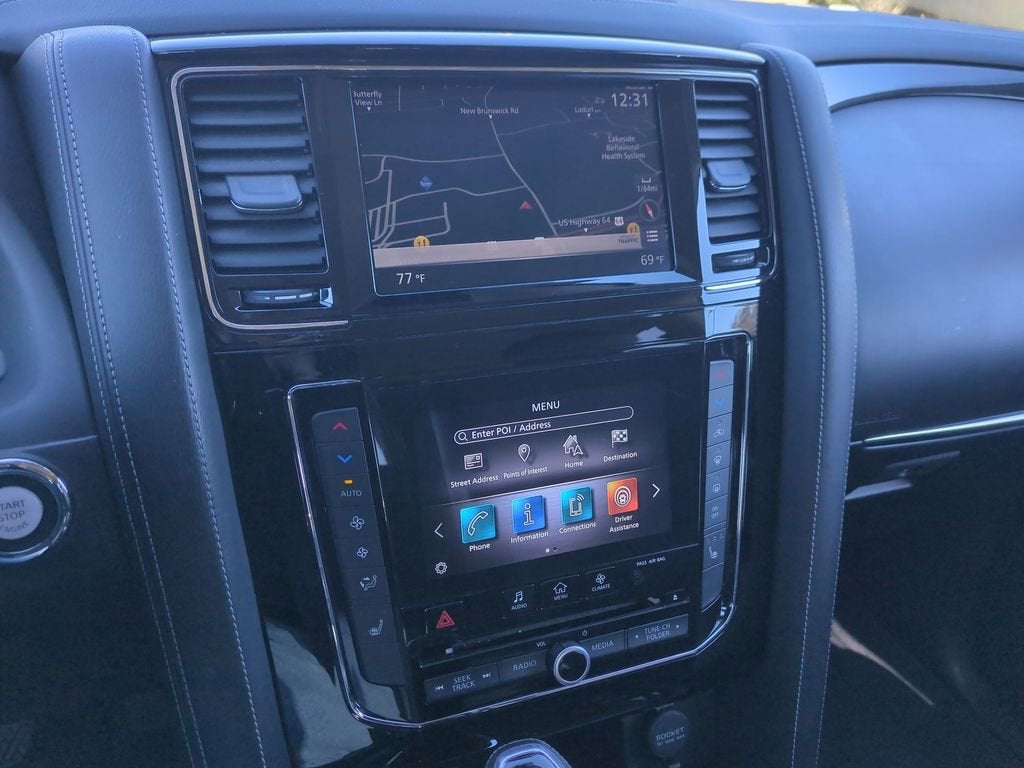 This QX80 LUXE is nicely equipped with ProASSIST Package (Blind Spot Intervention (BSI), Intelligent Cruise Control, Lane Departure Prevention (LDP), and Smart Rear View Mirror), 13 Speakers, 2.937 Axle Ratio, 3rd row seats: split-bench, 4-Wheel Disc Brakes, ABS brakes, Air Conditioning, Alloy wheels, AM/FM radio: SiriusXM, Anti-whiplash front head restraints, Apple CarPlay/Android Auto, Auto High-beam Headlights, Auto tilt-away steering wheel, Auto-dimming door mirrors, Auto-dimming Rear-View mirror, Auto-leveling suspension, Automatic temperature control, Blind Spot Warning, Brake assist, Bumpers: body-color, CD player, Compass, Delay-off headlights, Driver door bin, Driver vanity mirror, Dual front impact airbags, Dual front side impact airbags, DVD-Audio, Electronic Stability Control, Emergency communication system: INFINITI Connection, Four wheel independent suspension, Front anti-roll bar, Front Bucket Seats, Front Center Armrest, Front dual zone A/C, Front fog lights, Front reading lights, Fully automatic headlights, Garage door transmitter: HomeLink, Heated door mirrors, Heated Front Bucket Seats, Heated front seats, Heated steering wheel, Illuminated entry, Leather Shift Knob, Leather steering wheel, Leather-Appointed Seats, Literature Kit, Low tire pressure warning, Memory seat, Navigation system: INFINITI InTouch Navigation, Occupant sensing airbag, Outside temperature display, Overhead airbag, Overhead console, Panic alarm, Passenger door bin, Passenger vanity mirror, Power door mirrors, Power driver seat, Power Liftgate, Power moonroof, Power passenger seat, Power steering, Power windows, Radiant Illuminated Kick Plates, Radio data system, Radio: AM/FM/HD w/Single In-Dash CD Player & MP3, Rain sensing wipers, Rear air conditioning, Rear anti-roll bar, Rear audio controls, Rear reading lights, Rear seat center armrest, Rear window defroster, Rear window wiper, Reclining 3rd row seat, Remote keyless entry, Security system, Speed control, Speed-sensing steering, Split folding rear seat, Spoiler, Steering wheel memory, Steering wheel mounted audio controls, Tachometer, Telescoping steering wheel, Tilt steering wheel, Traction control, Trip computer, Turn signal indicator mirrors, Variably intermittent wipers, Voltmeter, and Wheels: 20 x 8.0 Aluminum-Alloy. Price does not include licensing costs, registration fees, taxes and dealer doc fee of $899.50 which are to be paid by the consumer.