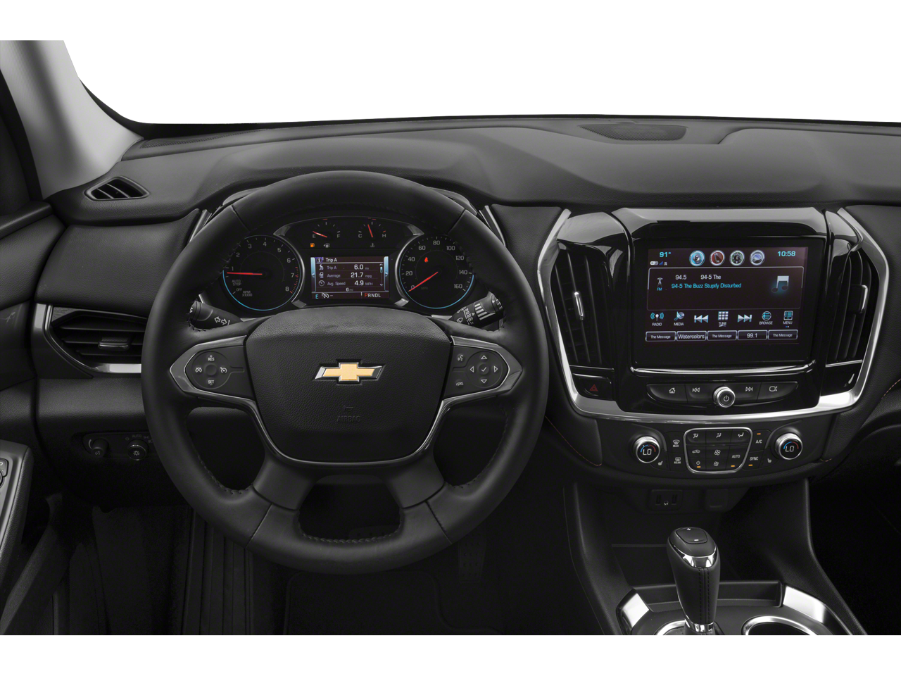 Recent Arrival! Clean CARFAX. Satin Steel Metallic AWD. This Traverse LT is nicely equipped with AWD, 3.49 Axle Ratio, 3rd row seats: split-bench, 4-Wheel Disc Brakes, 6 Speakers, 7-Passenger Seating (2-2-3 Seating Configuration), ABS brakes, Air Conditioning, Alloy wheels, AM/FM radio: SiriusXM, Apple CarPlay/Android Auto, Auto High-beam Headlights, Automatic temperature control, Brake assist, Bumpers: body-color, Compass, Delay-off headlights, Driver door bin, Driver vanity mirror, Dual front impact airbags, Dual front side impact airbags, Electronic Stability Control, Emergency communication system: OnStar and Chevrolet connected services capable, Four wheel independent suspension, Front anti-roll bar, Front Bucket Seats, Front Center Armrest, Front dual zone A/C, Front fog lights, Front reading lights, Fully automatic headlights, Heated door mirrors, High-Intensity Discharge Headlights, Illuminated entry, Lane Departure Warning System, Leather steering wheel, Low tire pressure warning, Occupant sensing airbag, Outside temperature display, Overhead airbag, Overhead console, Panic alarm, Passenger door bin, Passenger vanity mirror, Power door mirrors, Power driver seat, Power steering, Power windows, Premium Cloth Seat Trim, Radio data system, Radio: Chevrolet Infotainment System AM/FM Stereo, Rear air conditioning, Rear anti-roll bar, Rear reading lights, Rear window defroster, Rear window wiper, Remote keyless entry, Roof rack: rails only, Security system, SiriusXM Radio, Speed control, Speed-sensing steering, Spoiler, Steering wheel mounted audio controls, Tachometer, Telescoping steering wheel, Tilt steering wheel, Traction control, Trip computer, Turn signal indicator mirrors, Variably intermittent wipers, Voltmeter, and Wheels: 18 Bright Silver Painted Aluminum. Price does not include licensing costs, registration fees, taxes and dealer doc fee of $899.50 which are to be paid by the consumer. Mileage is EPA Estimated.
