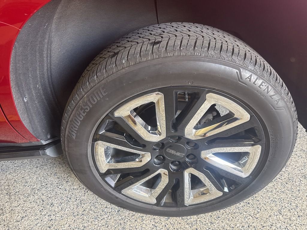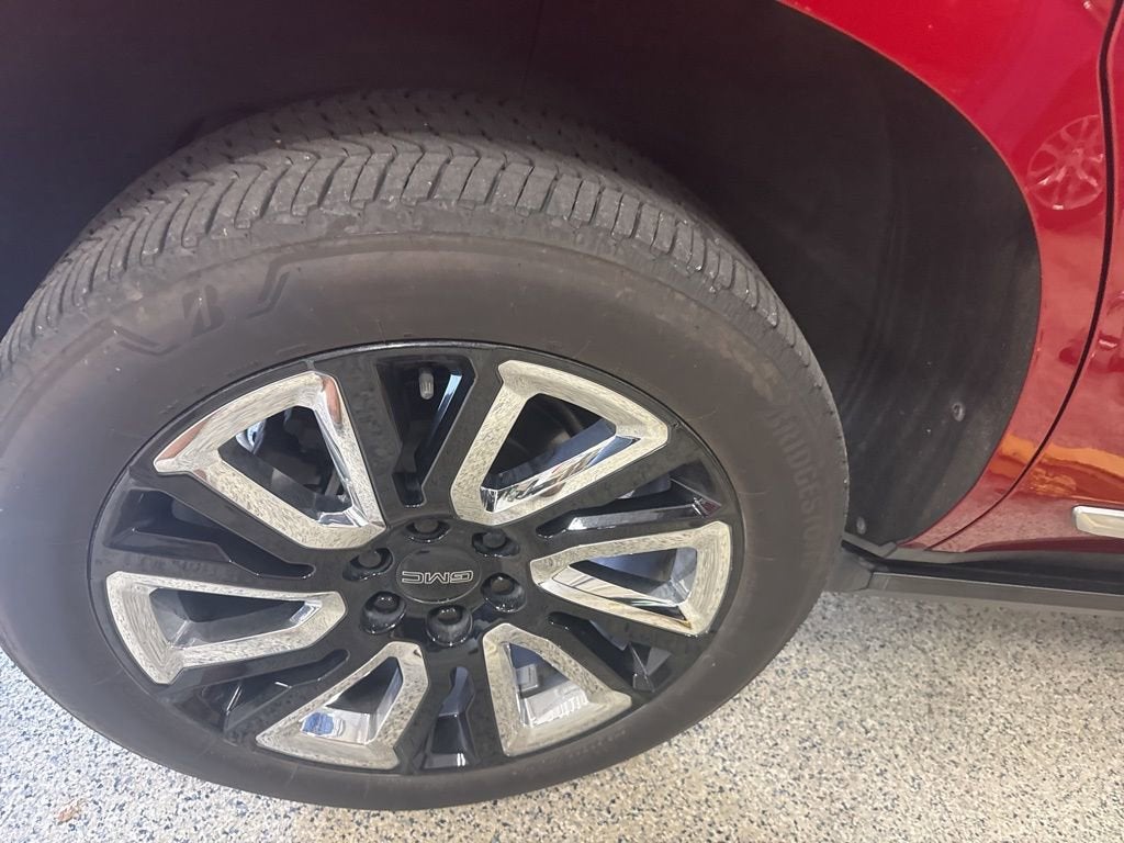 This Yukon Denali is nicely equipped with Illumination Package (LPO) (Illuminated Front GMC Emblem (LPO) and Illuminated Mirror GMC Emblem (LPO)), Preferred Equipment Group 5SA (12-Way Power Seat Adjusters, 15 Diagonal Multi-Color Head-Up Display, 2 Presets For Outside Rearview Mirrors, 3rd Row 60/40 Power-Folding Split-Bench Seat, Bright Front & Rear Door Sill Plates, Chrome Door Handles w/Body-Color Strip, Dual Exhaust System, Galvano Bodyside Moldings, Hands-Free Power Programmable Rear Liftgate, HD Surround Vision, Heated & Ventilated Driver & Front Passenger Seats, Heated 2nd Row Outboard Position Seats, Heated Automatic Steering Wheel, Heated Driver & Front Passenger Seats, Hill Descent Control, Inside Rear-View Auto-Dimming Mirror, Outside Heated Power-Adjustable Mirrors, Power Release 2nd Row Bucket Seats, Power Tilt & Telescopic Steering Column, Rear Pedestrian Alert, Safety Alert Seat, and Universal Home Remote), 4WD, 14 Speakers, 3.23 Rear Axle Ratio, 3rd row seats: split-bench, 4-Wheel Disc Brakes, ABS brakes, Adaptive suspension, Air Conditioning, Alloy wheels, AM/FM radio: SiriusXM with 360L, Apple CarPlay/Android Auto, Auto High-beam Headlights, Auto-dimming door mirrors, Auto-dimming Rear-View mirror, Auto-leveling suspension, Automatic Emergency Braking, Automatic temperature control, Bodyside moldings, Bose 14-Speaker Surround w/CenterPoint, Brake assist, Bumpers: body-color, Compass, Delay-off headlights, Driver door bin, Driver vanity mirror, Dual front impact airbags, Dual front side impact airbags, Dual-Pane Panoramic Power Sunroof, Electronic Stability Control, Emergency communication system: OnStar and GMC connected services capable, Following Distance Indicator, Forward Collision Alert, Four wheel independent suspension, Front & Rear Park Assist, Front anti-roll bar, Front Bucket Seats, Front Center Armrest, Front dual zone A/C, Front fog lights, Front Pedestrian Braking, Front reading lights, Fully automatic headlights, Garage door transmitter, HD Radio, Heads-Up Display, Heated door mirrors, Heated front seats, Heated rear seats, Heated steering wheel, Illuminated entry, IntelliBeam Automatic High Beam On/Off, Jet Black Interior Trim, Lane Change Alert w/Side Blind Zone Alert, Lane Keep Assist w/Lane Departure Warning, Leather steering wheel, Low tire pressure warning, Magnetic Ride Control Suspension, Memory seat, Navigation System, Occupant sensing airbag, Outside temperature display, Overhead airbag, Overhead console, Panic alarm, Passenger door bin, Passenger vanity mirror, Perforated Leather Seating Surfaces, Power door mirrors, Power driver seat, Power Liftgate, Power passenger seat, Power steering, Power windows, Power-Retractable Assist Steps, Radio: AM/FM/SiriusXM w/Navigation, Rain sensing wipers, Rear air conditioning, Rear anti-roll bar, Rear Cross Traffic Alert, Rear reading lights, Rear Seat Media System, Rear window defroster, Rear window wiper, Remote keyless entry, Roof rack: rails only, Security system, SiriusXM w/360L, Speed control, Speed-sensing steering, Split folding rear seat, Spoiler, Steering wheel memory, Steering wheel mounted audio controls, Tachometer, Telescoping steering wheel, Tilt steering wheel, Traction control, Trip computer, Turn signal indicator mirrors, Variably intermittent wipers, Ventilated front seats, Vertical Cargo Net (LPO), Voltmeter, Wheel Locks, Wheels: 20 x 9 6-Spoke Polished Aluminum, and Wheels: 22 x 9 Bright Machined Aluminum. Price does not include licensing costs, registration fees, taxes and dealer doc fee of $899.50 which are to be paid by the consumer.