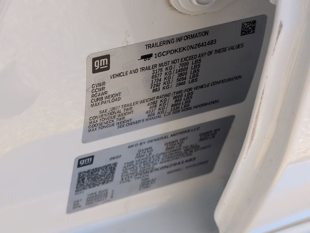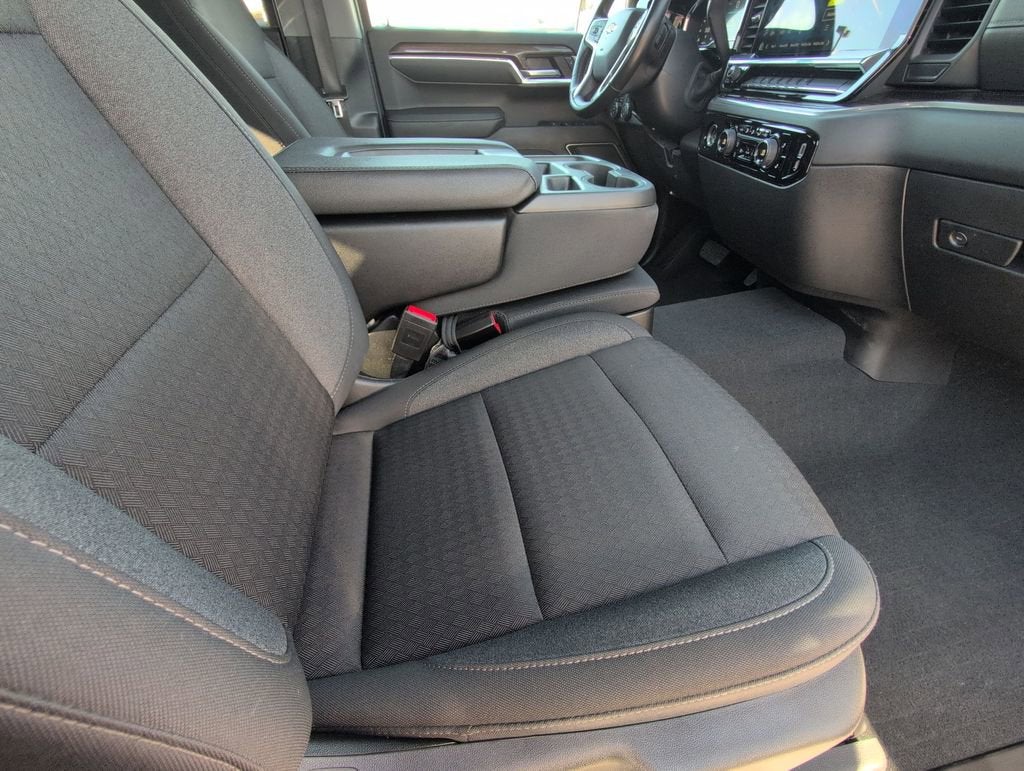 This Silverado 1500 LT is nicely equipped with Convenience Package (10-Way Power Driver Seat w/Lumbar, 120-Volt Bed Mounted Power Outlet, 120-Volt Instrument Panel Power Outlet, Dual Rear USB Ports (Charge Only), Dual-Zone Automatic Climate Control, Heated Driver & Front Outboard Passenger Seats, Heated Steering Wheel, Keyless Open & Start, Leather Wrapped Steering Wheel, and Manual Tilt/Telescoping Steering Column), Standard Suspension Package, Trailering Package (Hitch Guidance), 8-Speed Automatic, 4WD, Black Cloth, 12.3 Multicolor Reconfigurable Digital Display, 3.42 Rear Axle Ratio, 4-Wheel Disc Brakes, 40/20/40 Front Split-Bench Seat, 6 Speakers, 6-Speaker Audio System, ABS brakes, Air Conditioning, All-Star Edition, Alloy wheels, AM/FM radio: SiriusXM with 360L, Apple CarPlay/Android Auto, Auto High-beam Headlights, Auto-Locking Rear Differential, Automatic Emergency Braking, Automatic temperature control, Bluetooth® For Phone, Brake assist, Bumpers: chrome, Chevrolet Connected Access Capable, Chrome Mirror Caps, Cloth Seat Trim, Color-Keyed Carpeting Floor Covering, Compass, Deep-Tinted Glass, Delay-off headlights, Driver door bin, Driver vanity mirror, Dual front impact airbags, Dual front side impact airbags, Electric Rear-Window Defogger, Electrical Steering Column Lock, Electronic Cruise Control, Electronic Stability Control, Following Distance Indicator, Forward Collision Alert, Front anti-roll bar, Front Center Armrest w/Storage, Front dual zone A/C, Front Frame-Mounted Black Recovery Hooks, Front License Plate Kit, Front Pedestrian Braking, Front reading lights, Front wheel independent suspension, Fully automatic headlights, HD Rear Vision Camera, Heated door mirrors, Heated front seats, Heated steering wheel, Illuminated entry, IntelliBeam Automatic High Beam On/Off, Lane Keep Assist w/Lane Departure Warning, LED Cargo Area Lighting, Low tire pressure warning, Not Equipped w/Steering Column Lock, Occupant sensing airbag, OnStar & Chevrolet Connected Services Capable, Outside temperature display, Overhead airbag, Overhead console, Panic alarm, Passenger door bin, Passenger vanity mirror, Power door mirrors, Power driver seat, Power Front Windows w/Driver Express Up/Down, Power Front Windows w/Passenger Express Down, Power Rear Windows w/Express Down, Power steering, Power windows, Premium audio system: Chevrolet Infotainment 3 Premium, Radio data system, Radio: Chevrolet Infotainment 3 Premium System, Rear 60/40 Folding Bench Seat (Folds Up), Rear reading lights, Rear step bumper, Rear window defroster, Remote keyless entry, Remote Vehicle Starter System, Security system, SiriusXM w/360L, Speed control, Speed-sensing steering, Split folding rear seat, Steering Wheel Audio Controls, Steering wheel mounted audio controls, Tachometer, Telescoping steering wheel, Theft Deterrent System (Unauthorized Entry), Tilt steering wheel, Traction control, Trip computer, Variably intermittent wipers, Voltmeter, Wheels: 18 x 8.5 Bright Silver Painted Aluminum, Wi-Fi Hot Spot Capable, and Wireless Phone Projection. Price does not include licensing costs, registration fees, taxes and dealer doc fee of $899.50 which are to be paid by the consumer.