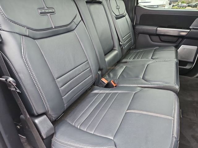 Recent Arrival! CARFAX One-Owner. Star White Metallic Tri-Coat 3.5L PowerBoost Full-Hybrid V6, 4WD. This F-150 Platinum is nicely equipped with Bed Utility Package (BoxLink, LED Box Lighting, Power Tailgate, and Tailgate Step w/Tailgate Work Surface), Equipment Group 701A High (Radio: B&O Unleashed Sound System by Bang & Olufsen), Ford Co-Pilot360 Active 2.0 (Active Park Assist 2.0 and BlueCruise), FX4 Off-Road Package (4x4 FX4 Off-Road Bodyside Decal, Hill Descent Control, Monotube Rear Shocks, Off-Road Tuned Front Shock Absorbers, Rock Crawl Mode, and Tray Style Floor Liner), Max Trailer Tow Package (Class IV Trailer Hitch Receiver, Extended Range 36 Gallon Fuel Tank, Integrated Trailer Brake Controller, and Pro Trailer Backup Assist), 3.5L PowerBoost Full-Hybrid V6, 4WD, 20 Polished Aluminum Wheels, 360 Degree Camera, 4-Wheel Disc Brakes, 8 Speakers, ABS brakes, Active Park Assist 2.0 Removal, Adjustable pedals, Air Conditioning, Alloy wheels, AM/FM radio: SiriusXM with 360L, Auto High-beam Headlights, Auto Start-Stop Removal, Auto tilt-away steering wheel, Auto-dimming door mirrors, Auto-dimming Rear-View mirror, Automatic temperature control, Brake assist, Bumpers: body-color, Compass, Delay-off headlights, Driver door bin, Driver vanity mirror, Dual front impact airbags, Dual front side impact airbags, Electronic Stability Control, Emergency communication system: SYNC 4 911 Assist, Engine Block Heater, Exposed Wheel Lock Kit, Exterior Parking Camera Rear, Front anti-roll bar, Front Bucket Seats, Front Center Armrest, Front dual zone A/C, Front fog lights, Front reading lights, Front wheel independent suspension, Fully automatic headlights, Garage door transmitter, Heated door mirrors, Heated front seats, Heated rear seats, Heated steering wheel, Illuminated entry, Interior Work Surface, LED Sideview Mirror Spotlights, Low tire pressure warning, Memory seat, Multicontour Seats w/Active Motion Removal, Occupant sensing airbag, Outside temperature display, Overhead airbag, Overhead console, Panic alarm, Passenger door bin, Passenger vanity mirror, Pedal memory, Power door mirrors, Power driver seat, Power passenger seat, Power steering, Power windows, Pro Power Onboard - 7.2KW, Radio data system, Radio: B&O Sound System by Bang & Olufsen, Rain sensing wipers, Rear reading lights, Rear seat center armrest, Rear step bumper, Rear window defroster, Remote keyless entry, Security system, Speed control, Speed-sensing steering, Split folding rear seat, Steering wheel memory, Steering wheel mounted audio controls, SYNC 4 w/Enhanced Voice Recognition, Tachometer, Telescoping steering wheel, Tilt steering wheel, Traction control, Trip computer, Turn signal indicator mirrors, Twin Panel Moonroof, Unique Multi-Contour Leather Bucket Seats, Variably intermittent wipers, Ventilated front seats, and Voltmeter. Price does not include licensing costs, registration fees, taxes and dealer doc fee of $899.50 which are to be paid by the consumer. Mileage is EPA Estimated.