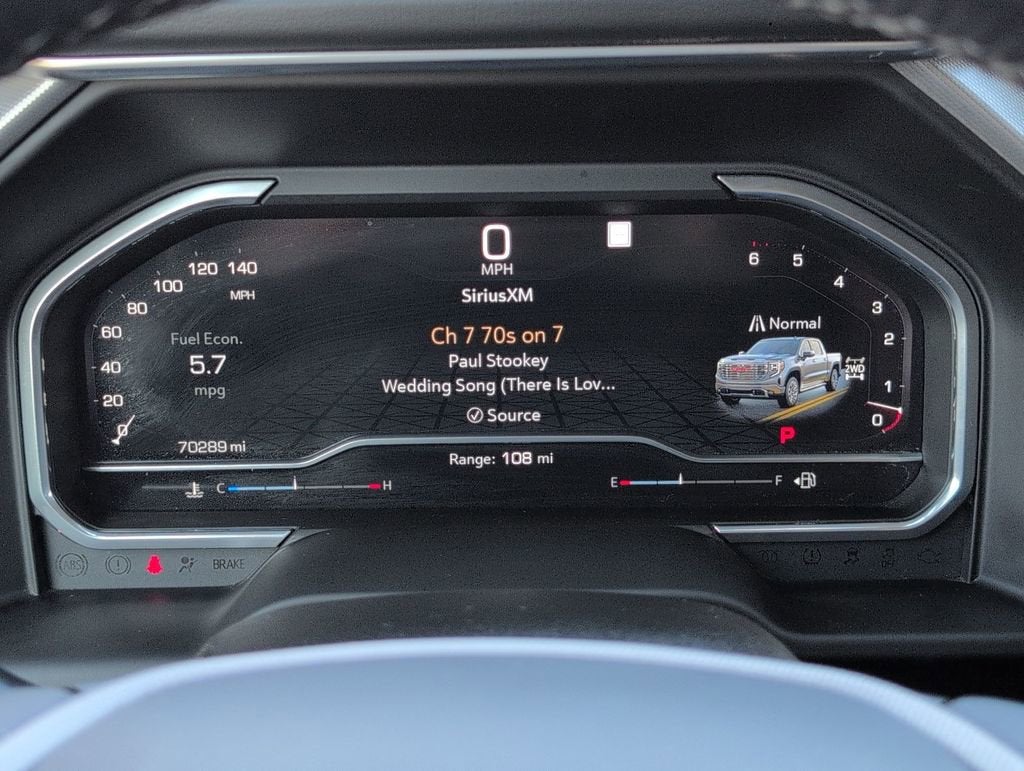This Sierra 1500 Denali is nicely equipped with Preferred Equipment Group 5SA (120-Volt Bed Mounted Power Outlet, 120-Volt Instrument Panel Power Outlet, 170 Amp Alternator, 2 Charge/Data USB Ports Inside Center Console, 2 Type-C Charge-Only Rear USB Ports, 2 USB Ports, Auto-Locking Rear Differential, Auxiliary External Transmission Oil Cooler, Bed View Camera, Chrome Header w/Signature Denali Chrome Grille, Chrome Recovery Hooks, Chrome Wheel To Wheel Assist Steps, Color-Keyed Carpeting Floor Covering, Compass, Deep-Tinted Glass, Electric Rear-Window Defogger, Electrical Steering Column Lock, Floor-Mounted Center Console, Front Rainsensing Wipers, GMC Connected Access Capable, HD Surround Vision, Heated 2nd Row Outboard Seats, Heated Driver & Front Outboard Passenger Seating, Heated Steering Wheel, Heavy-Duty Air Filter, Hill Descent Control, Hitch Guidance w/Hitch View, In-Vehicle Trailering App, Integrated Trailer Brake Controller, Keyless Open & Start, LED Cargo Area Lighting, OnStar & GMC Connected Services Capable, Perimeter Lighting, Power Door Locks, Power Front Passenger Windows w/Express Up/Down, Power Front Windows w/Driver Express Up/Down, Power Rake & Telescoping Steering Column, Power Rear Windows w/Express Down, Power Sliding Rear Window w/Rear Defogger, Premium Bose 7-Speaker Sound System, Push Button Start, Rear Cross Traffic Braking, Rear Pedestrian Detection, Rear Wheelhouse Liners, Remote Vehicle Starter System, SiriusXM w/360L, Spray-On Pickup Bed Liner w/Denali Logo, Steering Wheel Audio Controls, Theft Deterrent System (Unauthorized Entry), Trailer Camera Provisions, Trailer Side Blind Zone Alert, Ultrasonic Front & Rear Park Assist, Universal Home Remote, Ventilated Driver & Front Passenger Seats, Wi-Fi Hotspot Capable, Wireless Charging, and Wireless Phone Projection), Trailering Package (Hitch Guidance), 10-Speed Automatic, 4WD, Jet Black Leather, 10-Way Power Driver Seat Adjuster w/Lumbar, 10-Way Power Passenger Seat Adjuster w/Lumbar, 3 Years of OnStar Safety & Security, 3.23 Rear Axle Ratio, 4-Wheel Disc Brakes, 7 Speakers, ABS brakes, Adaptive suspension, Air Conditioning, Alloy wheels, AM/FM radio: SiriusXM with 360L, Apple CarPlay/Android Auto, Auto High-beam Headlights, Auto-dimming door mirrors, Auto-dimming Rear-View mirror, Automatic Emergency Braking, Automatic temperature control, Brake assist, Buckle to Drive, Bumpers: body-color, Delay-off headlights, Denali Premium Suspension w/Adaptive Ride Control, Driver door bin, Driver Memory, Driver vanity mirror, Dual front impact airbags, Dual front side impact airbags, Electronic Stability Control, Emergency communication system: OnStar and GMC Connected Services capable, Following Distance Indicator, Forge Perforated Leather Seat Trim, Forward Collision Alert, Front anti-roll bar, Front Bucket Seats, Front Center Armrest, Front dual zone A/C, Front fog lights, Front License Plate Kit, Front Pedestrian Braking, Front reading lights, Front wheel independent suspension, Fully automatic headlights, Garage door transmitter, Genuine wood console insert, Genuine wood dashboard insert, Genuine wood door panel insert, Heated door mirrors, Heated front seats, Heated rear seats, Heated steering wheel, Illuminated entry, IntelliBeam Automatic High Beam On/Off, Lane Keep Assist w/Lane Departure Warning, Low tire pressure warning, Memory seat, Navigation System, Not Equipped w/Dynamic Fuel Management, Not Equipped w/Steering Column Lock, Occupant sensing airbag, Outside temperature display, Overhead airbag, Overhead console, Panic alarm, Passenger door bin, Passenger vanity mirror, Power door mirrors, Power driver seat, Power passenger seat, Power steering, Power windows, Premium audio system: GMC Infotainmen