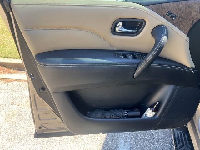 Recent Arrival! CARFAX One-Owner. Clean CARFAX. Champagne Quartz This QX80 LUXE is nicely equipped with Cargo Package (Console Net, First-Aid Kit, High-Density Non-Slip Rear Cargo Carpet, and Nylon-Cord Cargo Net), Split Bench Seat Package, 13 Speakers, 2.937 Axle Ratio, 3rd row seats: split-bench, 4-Wheel Disc Brakes, ABS brakes, Air Conditioning, Alloy wheels, AM/FM radio: SiriusXM, Anti-whiplash front head restraints, Auto High-beam Headlights, Auto tilt-away steering wheel, Auto-dimming door mirrors, Auto-dimming Rear-View mirror, Auto-leveling suspension, Automatic temperature control, Brake assist, Bumpers: body-color, Compass, Delay-off headlights, Driver door bin, Driver vanity mirror, Dual front impact airbags, Dual front side impact airbags, Electronic Stability Control, Emergency communication system: INFINITI InTouch w/1-year trial, Four wheel independent suspension, Front anti-roll bar, Front Bucket Seats, Front Center Armrest, Front dual zone A/C, Front fog lights, Front reading lights, Fully automatic headlights, Garage door transmitter: HomeLink, Heated door mirrors, Heated Front Bucket Seats, Heated front seats, Heated steering wheel, Illuminated entry, Leather Shift Knob, Leather steering wheel, Leather-Appointed Seats, Literature Kit, Low tire pressure warning, Memory seat, Navigation system: INFINITI InTouch Navigation, Occupant sensing airbag, Outside temperature display, Overhead airbag, Overhead console, Panic alarm, Passenger door bin, Passenger vanity mirror, Power door mirrors, Power driver seat, Power Liftgate, Power moonroof, Power passenger seat, Power steering, Power windows, Premium audio system: Bose, Radio data system, Radio: Bose Premium Audio System w/13 Speakers, Rain sensing wipers, Rear air conditioning, Rear anti-roll bar, Rear reading lights, Rear seat center armrest, Rear window defroster, Rear window wiper, Reclining 3rd row seat, Remote keyless entry, Roof Rail Cross Bars, Security system, Speed control, Speed-sensing steering, Split folding rear seat, Spoiler, Steering wheel memory, Steering wheel mounted audio controls, Tachometer, Telescoping steering wheel, Tilt steering wheel, Traction control, Trip computer, Turn signal indicator mirrors, Variably intermittent wipers, and Voltmeter. Price does not include licensing costs, registration fees, taxes and dealer doc fee of $899.50 which are to be paid by the consumer. Mileage is EPA Estimated.CALL NOW! This vehicle will not make it to the weekend!! Mileage is EPA Estimated.