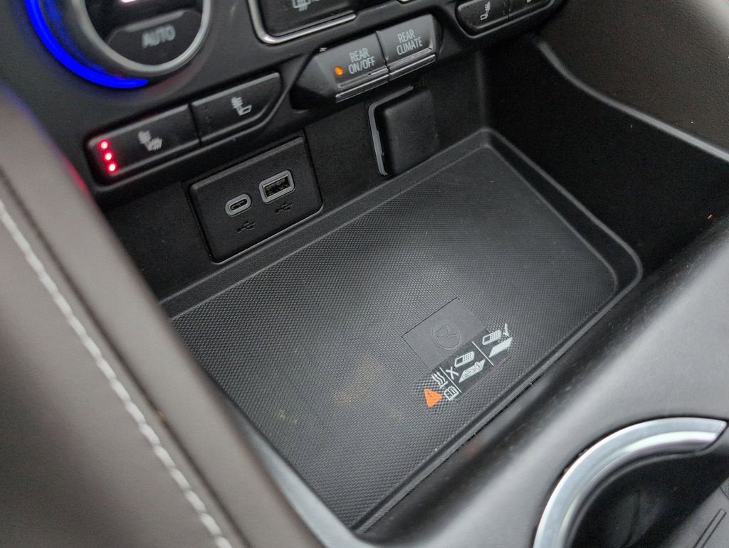 This Tahoe Z71 is nicely equipped with Driver Alert Package (Lane Change Alert w/Side Blind Zone Alert and Rear Cross Traffic Alert), Luxury Package (2nd Row Pwr Release 60/40 Split-Folding Bench Seat, 3rd Row 60/40 Power-Folding Split-Bench Seat, HD Surround Vision, Heated 2nd Row Outboard Seats, Heated Steering Wheel, Memory Settings, Outside Heated Power-Adjustable Mirrors, Power Tilt & Telescopic Steering Column, and Rear Pedestrian Alert), Preferred Equipment Group 2Z7 (1st & 2nd Row Color-Keyed Carpeted Floor Mats, 2-Speed Active Electronic AutoTrac Transfer Case, Auto-Dimming Inside Rear-View Mirror, Black Tubular Assist Steps, Bose 9-Speaker Stereo Audio System Feature, Bright Front & Rear Door Sill Plates, Color-Keyed Carpeting Floor Covering, Driver & Front Outboard Passenger Airbags, Enhanced Driver Information Center, Floor Console w/Storage Area, Front High-Approach Angle Fascia, Hands-Free Rear Power Programmable Liftgate, Hill Descent Control, Infotainment Display, LED Daytime Running Lamps, Memory Settings for Driver, Red Horizontal-Mounted Recovery Hooks, Remote Start, SiriusXM Radio w/360L, Universal Home Remote, Wireless Charging, and Wrapped Steering Wheel), 4WD, Gideon/Very Dark Atmosphere Leather, 10-Way Power Driver & Passenger Seat Adjusters, 1st, 2nd & 3rd Rows All-Weather Floor Liners (LPO), 3.23 Rear Axle Ratio, 3rd row seats: split-bench, 4-Wheel Disc Brakes, 9 Speakers, ABS brakes, Air Conditioning, Alloy wheels, AM/FM radio: SiriusXM with 360L, Apple CarPlay/Android Auto, Auto High-beam Headlights, Auto-dimming Rear-View mirror, Automatic temperature control, Brake assist, Bumpers: body-color, Compass, Delay-off headlights, Driver door bin, Driver vanity mirror, Dual front impact airbags, Dual front side impact airbags, Dual-Pane Power Panoramic Sunroof, Electronic Stability Control, Emergency communication system: OnStar and Chevrolet connected services capable, Four wheel independent suspension, Front anti-roll bar, Front Bucket Seats, Front Center Armrest, Front dual zone A/C, Front High-Back Reclining Bucket Seats, Front reading lights, Fully automatic headlights, Garage door transmitter, Heated door mirrors, Heated Driver & Front Passenger Seats, Heated front seats, Illuminated entry, Leather-Appointed Seat Trim, Low tire pressure warning, Memory seat, Navigation System, Occupant sensing airbag, Outside temperature display, Overhead airbag, Overhead console, Panic alarm, Passenger door bin, Passenger vanity mirror, Power door mirrors, Power driver seat, Power Liftgate, Power passenger seat, Power Release 2nd Row Bucket Seats, Power steering, Power windows, Premium audio system: Chevrolet Infotainment 3 Premium, Premium Smooth Ride Suspension, Radio: Chevrolet Infotainment 3 Premium System, Rain sensing wipers, Rear air conditioning, Rear anti-roll bar, Rear reading lights, Rear seat center armrest, Rear window defroster, Rear window wiper, Remote keyless entry, Roof rack: rails only, Security system, Speed control, Speed-sensing steering, Split folding rear seat, Spoiler, Steering wheel mounted audio controls, Tachometer, Telescoping steering wheel, Tilt steering wheel, Traction control, Trip computer, Variably intermittent wipers, Voltmeter, and Wheels: 20 x 9 Machined Aluminum. Price does not include licensing costs, registration fees, taxes and dealer doc fee of $899.50 which are to be paid by the consumer.