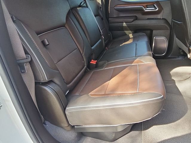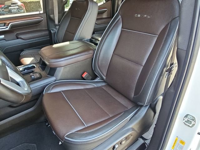 CARFAX One-Owner. Clean CARFAX. Certified. White Frost Tricoat 10-Speed Automatic, 4WD, Atmosphere/Brownstone Leather. This Sierra 1500 Denali is nicely equipped with Cargo Convenience Package (Console-Mounted Safe (LPO) and Rear Underseat Storage (LPO)), Denali CarbonPro Edition (Carbon Fiber Composite Bed, CarbonPro Fender Hard Badge, and MultiPro Audio System by Kicker (LPO)), Denali Reserve Package (GMC MultiPro Power Steps, Power Sunroof, Wheel Locks (Set of 4) (LPO), and Wheels: 22 x 9 Painted Aluminum), Preferred Equipment Group 5SA (120-Volt Bed Mounted Power Outlet, 120-Volt Instrument Panel Power Outlet, 170 Amp Alternator, 2 Charge/Data USB Ports Inside Center Console, 2 Type-C Charge-Only Rear USB Ports, 2 USB Ports, Auto-Locking Rear Differential, Auxiliary External Transmission Oil Cooler, Bed View Camera, Chrome Header w/Signature Denali Chrome Grille, Chrome Recovery Hooks, Chrome Wheel To Wheel Assist Steps, Color-Keyed Carpeting Floor Covering, Compass, Deep-Tinted Glass, Electric Rear-Window Defogger, Electrical Steering Column Lock, Floor-Mounted Center Console, Front Rainsensing Wipers, GMC Connected Access Capable, HD Surround Vision, Heated 2nd Row Outboard Seats, Heated Driver & Front Outboard Passenger Seating, Heavy-Duty Air Filter, Hill Descent Control, Hitch Guidance w/Hitch View, In-Vehicle Trailering App, Integrated Trailer Brake Controller, Keyless Open & Start, LED Cargo Area Lighting, OnStar & GMC Connected Services Capable, Perimeter Lighting, Power Door Locks, Power Front Passenger Windows w/Express Up/Down, Power Front Windows w/Driver Express Up/Down, Power Rake & Telescoping Steering Column, Power Rear Windows w/Express Down, Power Sliding Rear Window w/Rear Defogger, Premium Bose 7-Speaker Sound System, Push Button Start, Rear Cross Traffic Braking, Rear Pedestrian Detection, Rear Wheelhouse Liners, Remote Vehicle Starter System, SiriusXM w/360L, Spray-On Pickup Bed Liner w/Denali Logo, Steering Wheel Audio Controls, Theft Deterrent System (Unauthorized Entry), Trailer Camera Provisions, Trailer Side Blind Zone Alert, Ultrasonic Front & Rear Park Assist, Universal Home Remote, Ventilated Driver & Front Passenger Seats, Wi-Fi Hotspot Capable, Wireless Charging, and Wireless Phone Projection), Technology Package (Adaptive Cruise Control, Multicolor 15 Diagonal Head-Up Display, and Rear Camera Mirror), Trailering Package (Hitch Guidance), GMC Certified Pre-Owned Certified, 10-Speed Automatic, 4WD, Atmosphere/Brownstone Leather, 10-Way Power Driver Seat Adjuster w/Lumbar, 10-Way Power Passenger Seat Adjuster w/Lumbar, 3.23 Rear Axle Ratio, 4-Wheel Disc Brakes, 7 Speakers, ABS brakes, Adaptive suspension, Air Conditioning, Alloy wheels, AM/FM radio, Apple CarPlay/Android Auto, Auto High-beam Headlights, Auto-dimming door mirrors, Auto-dimming Rear-View mirror, Automatic Emergency Braking, Automatic temperature control, Brake assist, Buckle to Drive, Bumpers: body-color, Delay-off headlights, Denali Premium Suspension w/Adaptive Ride Control, Driver door bin, Driver Memory, Driver vanity mirror, Dual front impact airbags, Dual front side impact airbags, Electronic Stability Control, Emergency communication system: OnStar and GMC connected services capable, Following Distance Indicator, Forge Perforated Leather Seat Trim, Forward Collision Alert, Front anti-roll bar, Front Bucket Seats, Front Center Armrest, Front dual zone A/C, Front fog lights, Front Pedestrian Braking, Front reading lights, Front wheel independent suspension, Fully automatic headlights, Garage door transmitter, Genuine wood console insert, Genuine wood dashboard insert, Genuine wood door panel insert, GMC MultiPro Tailgate Step Lights (LPO), Heated door mirrors, Heated front seats, Heated rear seats, Heated steering wheel, Illuminated entry, IntelliBeam Automatic High Beam On/Off, Lane Keep Assist w/Lane Departure Warning, Low tire pressure warning, Memory seat, Navigation Sys