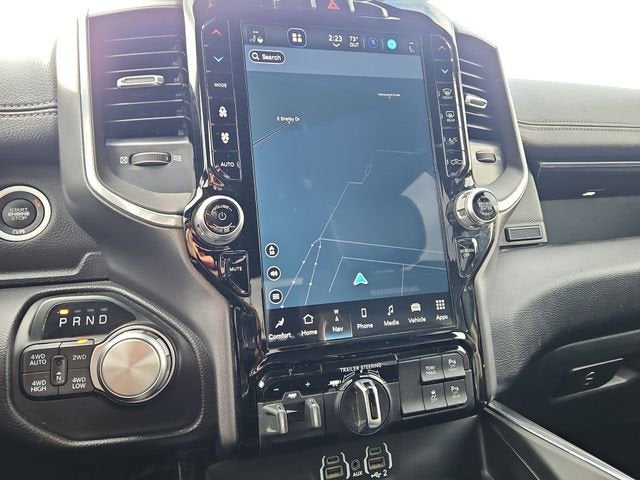 CARFAX One-Owner. Diamond Black Crystal Pearlcoat This 1500 Laramie is nicely equipped with Laramie Level 1 Equipment Group (12 Touchscreen Display, 2nd Row In Floor Storage Bins, 4G LTE Wi-Fi Hot Spot, Apple CarPlay, Auto High Beam Headlamp Control, Blind Spot & Cross Path Detection, Connected Travel & Traffic Services, Connectivity - US/Canada, Disassociated Touchscreen Display, Electric Shift-On-Demand Transfer Case, Foam Bottle Insert (Door Trim Panel), For Details, Visit DriveUconnect.com, For More Info, Call 800-643-2112, Front Door Accent Lighting, Front LED Fog Lamps, Global Telematics Box Module (TBM), Google Android Auto, GPS Antenna Input, GPS Navigation, HD Radio, Integrated Center Stack Radio, Integrated Voice Command w/Bluetooth®, LED Reflector Headlamps, Radio: Uconnect 5 Nav w/12.0 Display, Rain Sensitive Windshield Wipers, Rear Door Accent Lighting, Rear Power Sliding Window, Rear Window Defroster, Remote Tailgate Release, SiriusXM Radio Service, SiriusXM w/360L, and USB Host Flip), Quick Order Package 28H Laramie (DISC), Trailer Tow Group (Trailer Brake Control, Trailer Light Check, Trailer Reverse Steering Control, and Trailer Tire Pressure Monitoring System), #1 Seat Foam Cushion, 10 Speakers, 3 Rear Seat Head Restraints, 3.21 Rear Axle Ratio, 4 Way Front Headrests, 4-Wheel Disc Brakes, 48V Belt Starter Generator, ABS brakes, Adjustable pedals, Air Conditioning, Alloy wheels, AM/FM radio: SiriusXM with 360L, Apple CarPlay/Android Auto, Audio memory, Auto-dimming door mirrors, Auto-Dimming Exterior Driver Mirror, Auto-dimming Rear-View mirror, Automatic temperature control, Brake assist, Bumpers: chrome, Chrome Exterior Mirrors, Class IV Receiver Hitch, Compass, Convex Wide-Angle Exterior Mirror Insert, Delay-off headlights, Driver door bin, Driver Seat Memory, Driver vanity mirror, Dual front impact airbags, Dual front side impact airbags, Electronic Stability Control, Exterior Mirrors Courtesy Lamps, Exterior Mirrors w/Heating Element, Exterior Mirrors w/Memory, Exterior Mirrors w/Supplemental Signals, Front anti-roll bar, Front Center Armrest w/Storage, Front dual zone A/C, Front fog lights, Front reading lights, Front Seat Back Map Pockets, Front wheel independent suspension, Fully automatic headlights, Garage door transmitter, Heated door mirrors, Heated Front Seats, Heated front seats, Heated Steering Wheel, Heated steering wheel, Illuminated entry, Leather steering wheel, Leather Trim 40/20/40 Bench Seat, Low tire pressure warning, Memory seat, Navigation System, Occupant sensing airbag, Outside temperature display, Overhead airbag, Overhead console, Panic alarm, ParkSense Front/Rear Park Assist w/Stop (DISC), ParkView Rear Back-Up Camera, Passenger door bin, Passenger vanity mirror, Pedal memory, Power 2-Way Driver Lumbar Adjust, Power 2-Way Passenger Lumbar Adjust, Power 8-Way Driver & Passenger Seats, Power door mirrors, Power driver seat, Power passenger seat, Power steering, Power windows, Power-Folding Mirrors, Radio data system, Radio: Uconnect 5 Nav w/8.4 Display, RAM Grille Badge - Chrome, Rear 60/40 Folding Seat, Rear anti-roll bar, Rear seat center armrest, Rear step bumper, Remote keyless entry, Security system, Speed control, Split folding rear seat, Steering wheel mounted audio controls, Tachometer, Telescoping steering wheel, Tilt steering wheel, Traction control, Trip computer, Turn signal indicator mirrors, Variably intermittent wipers, Ventilated Front Seats, Ventilated front seats, Voltmeter, and Wheels: 18 x 8 Aluminum Base Painted. Price does not include licensing costs, registration fees, taxes and dealer doc fee of $899.50 which are to be paid by the consumer. Mileage is EPA Estimated.
