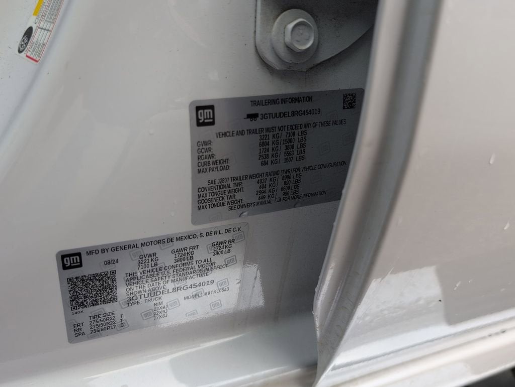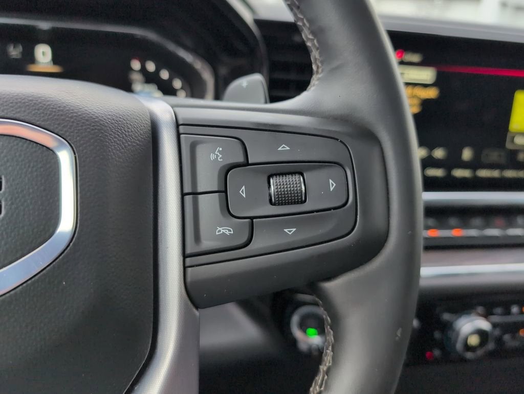 This Sierra 1500 SLT is nicely equipped with High Capacity Suspension Package, Preferred Equipment Group 4SA (120-Volt Bed Mounted Power Outlet, 120-Volt Interior Power Outlet, 170 Amp Alternator, 2 Charge/Data USB Ports, 2 Type-C Charge-Only Rear USB Ports, 6-Speaker Audio System Feature, Auto-Locking Rear Differential, Auxiliary External Transmission Oil Cooler, Chrome Header & Chrome Grille Insert Bars, Color-Keyed Carpeting Floor Covering, Deep-Tinted Glass, Electric Rear-Window Defogger, Front Frame-Mounted Black Recovery Hooks, Front Rain-Sensing Wipers, GMC Connected Access Capable, HD Rear Vision Camera, Keyless Open & Start, LED Cargo Area Lighting, Manual Tilt-Wheel & Telescoping Steering Column, OnStar & GMC Connected Services Capable, Perimeter Lighting, Power Door Locks, Power Front Passenger Windows w/Express Up/Down, Power Front Windows w/Driver Express Up/Down, Power Rear Windows w/Express Down, Push Button Start, Rear Wheelhouse Liners, Remote Vehicle Starter System, SiriusXM w/360L, Steering Wheel Audio Controls, Theft Deterrent System (Unauthorized Entry), and Wi-Fi Hotspot Capable), ProGrade Trailering System (Hitch View, In-Vehicle Trailering System App, and Integrated Trailer Brake Controller), Sierra Safety Plus Package (HD Surround Vision, Rear Cross Traffic Braking, Rear Pedestrian Detection, Safety Alert Seat, Trailer Camera Provisions, Trailer Side Blind Zone Alert, and Ultrasonic Front & Rear Park Assist), SLT Convenience Package (2 Charge/Data USB Ports Inside Center Console, Electronic Precision Shift, Floor-Mounted Center Console, Front Bucket Seats, Power Rake & Telescoping Steering Column, Premium Bose 7-Speaker Sound System, Ventilated Driver & Front Passenger Seats, and Wireless Charging), SLT Preferred Package (Adaptive Cruise Control, Heated 2nd Row Outboard Seats, Power Sliding Rear Window w/Rear Defogger, and Universal Home Remote), SLT Premium Package (20 Polished Aluminum Wheels and Chrome Wheel To Wheel Assist Steps), Standard Suspension Package, Trailering Package (Hitch Guidance), 10-Speed Automatic, 4WD, Jet Black Leather, 10-Way Power Driver Seat Adjuster w/Lumbar, 10-Way Power Passenger Seat Adjuster w/Lumbar, 3.23 Rear Axle Ratio, 4-Wheel Disc Brakes, 6 Speakers, ABS brakes, Air Conditioning, All-Weather Floor Liner (LPO), Alloy wheels, AM/FM radio: SiriusXM with 360L, Apple CarPlay/Android Auto, Auto High-beam Headlights, Auto-dimming door mirrors, Auto-dimming Rear-View mirror, Automatic Emergency Braking, Automatic temperature control, Brake assist, Buckle to Drive, Bumpers: chrome, Compass, Delay-off headlights, Driver door bin, Driver Memory, Driver vanity mirror, Dual Active Exhaust, Dual front impact airbags, Dual front side impact airbags, Electronic Stability Control, Following Distance Indicator, Forward Collision Alert, Front 40/20/40 Split-Bench Seat, Front anti-roll bar, Front Center Armrest w/Storage, Front dual zone A/C, Front fog lights, Front Pedestrian Braking, Front reading lights, Front wheel independent suspension, Fully automatic headlights, Heated door mirrors, Heated Driver & Front Outboard Passenger Seating, Heated front seats, Heated steering wheel, Illuminated entry, IntelliBeam Automatic High Beam On/Off, Lane Keep Assist w/Lane Departure Warning, Low tire pressure warning, Memory seat, Navigation System, Occupant sensing airbag, Outside temperature display, Overhead airbag, Overhead console, Panic alarm, Passenger door bin, Passenger vanity mirror, Perf Leather-Appointed Front Outboard Seat Trim, Power door mirrors, Power driver seat, Power passenger seat, Power steering, Power Sunroof, Power windows, Premium audio system: GMC Infotainment System, Radio data system, Radi